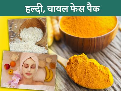 1) हल्दी, चावल फेस पैक: एक छोटे बाउल में 3 चम्मच चावल का आटा डालें। इसमें एक चुटकी हल्दी, एक चम्मच शहद और थोड़ा खीरा का रस डालें। सभी चीजों को मिक्स करने के लिए जरूरत के हिसाब से गुलाब जल मिलाएं। इस फेस पैक को चेहरे के साथ बॉडी के अन्य हिस्सों पर भी लगा सकते हैं।