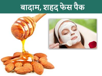 2) बादाम, शहद फेस पैक: 10 बादाम रातभर पानी में भिगो दें। सुबह इनका छिलका उतारकर मिक्सर में ब्लेंड कर लें। इस पेस्ट तैयार हो जाएगा। इस पेस्ट में एक चम्मच शहद मिलाएं। फेस पैक रेडी है।