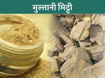 6) मुल्तानी मिट्टी: मुल्तानी मिट्टी में पाए जाने वाले खनिज तैलीय त्वचा पर चमत्कारी तरीके से काम करते है। इसका फेस पैक स्किन में से तेल को सोख कर नेचुरल सुंदरता देता है। इसके साथ ही यह कील मुंहासों को खत्म कर दाग धब्बों को हल्का कर देता है। दो चम्मच मुल्तानी मिट्टी, एक चम्मच दही, दो से तीन बूंद नींबू का रस मिक्स करके चेहरे पर लगा लें। फिर इसे ठंडे पानी के साथ धो ले। यह फेस पैक हफ्ते में तीन बार लगाएं।