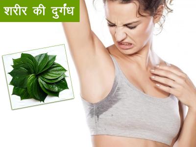 शरीर की दुर्गन्ध से पीछा छुड़वाने के लिए आप को नहाने से आधा घंटा पहले पानी में एक पान का पत्ता डाल कर छोड़ना होगा और नहाते वक्त उस पत्ते को पानी में निचोड़ दें ऐसा कुछ दिन लगातार करने से शरीर की दुर्गन्ध से छुटकारा मिलेगा।