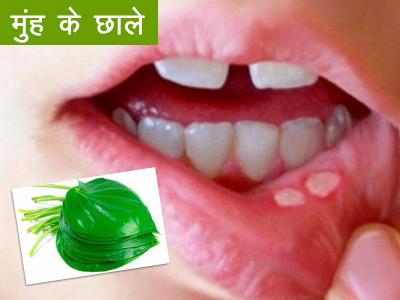 मुंह के छालों से छुटकारा पाने के लिए आप पान के पत्तों को उबालकर उस पानी से मॉउथ वॉश कर सकते हैं। यह छालो और मुंह की बदबू के लिए बहुत लाभदायक है।