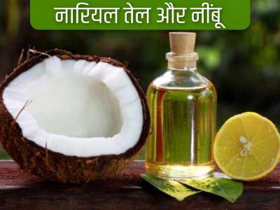 4) नारियल तेल और नींबू: नारियल तेल में नींबू के रस की कुछ बूंदें मिलाकर इस तेल को उबाल लें और इसके बाद इसे बालाओं और स्कैल्प पर लगाकर अच्छी तरह मसाज करें। करीब 45 मिनट तक इस तेल को बालों में लगा रहने दें और फिर हेयर वॉश कर लें।