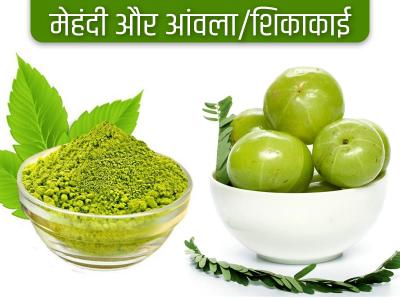 9) मेहंदी और आंवला/शिकाकाई: आंवला बालों को प्राकृतिक रूप से काला बनाने में मदद करता है। रातभर आंवला या शिकाकाई को पानी में भिगोकर रखें। सुबह होने पर इस पानी को मेहंदी में मिलाकर बालों में लगाएं। सूखने तक का इन्तजार करें और फिर हेयर वॉश कर लें।