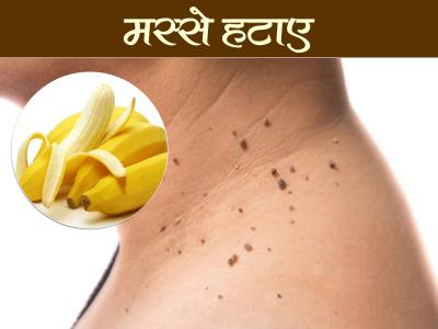 2) मस्से हटाए: केले के छिलके से स्किन पर होने वाले मस्से भी हटाए जा सकते हैं। इसके लिए मस्से पर केवल छिलके को रगड़ना है या फिर रातभर छिलके को मस्से वाली स्किन पर बांधकर भी सो सकते हैं। कुछ ही दिनों में यह मस्सा निकलने लगेगा।