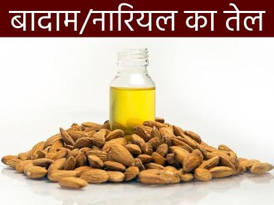 2) बादाम/नारियल का तेल: बादाम या नारियल तेल की कुछ बूंदें अपनी उंगलियों पर लें और थोड़ा-थोड़ा करके कोहनी और घुटनों पर लगाते रहें। चाहें तो इस तेल में टी-ट्री ऑइल भी मिलाया जा सकता है। तेल लगाते समय सर्कुलर मोशन में मालिश करें। मसाज के बाद गुनगुने पानी से तेल साफ कर लें। बादाम तेल में मौजूद विटामिन-ई स्किन को सॉफ्ट बनाएगा और रंग साफ करेगा। मसाज से ब्लड सर्कुलेशन में इजाफा होगा। इससे स्किन साफ होती है।