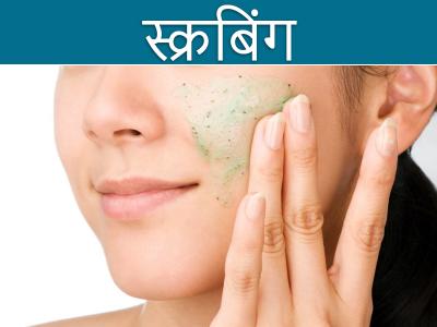 3) स्क्रबिंग - अब क्लीन-अप किट में से स्क्रब का इस्तेमाल करें। अपनी उंगलियों पर स्क्रब लें और हलके हाथों से चेहरे पर गोल गोल घुमाते हुए मसाज करें। ये मसाज आपको कम से कम 7 से 8 मिनट तक करनी है। इसके बाद चेहरा साफ कर लें