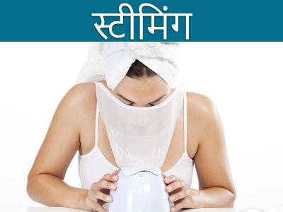 4) स्टीमिंग - स्क्रब करने के बाद स्किन के पोर्स खुल जाते हैं। इसकी गंदगी को गहराई से बाहर निकालने के लिए स्टीम दे। भाप से इन पोर्स के अन्दर की गंदगी और ब्लैकहेड्स ढीले पड़ जाएंगे जिससे इन्हें बाहर निकालने में आसानी हो जाएगी