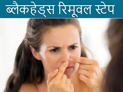 5) ब्लैकहेड्स रिमूवल स्टेप - अब बारी है स्किन में छिपे ब्लैकहेड्स को निकालने की। ब्लैकहेड्स रिमूवल टूल से बेहद सावधानी के साथ नाक के ऊपर, आसपास, होंठों और चिन के बीच की जगह से ब्लैकहेड्स निकालें। कहीं अधिक दर्द हो तो स्किन के साथ जबरदस्ती ना करें