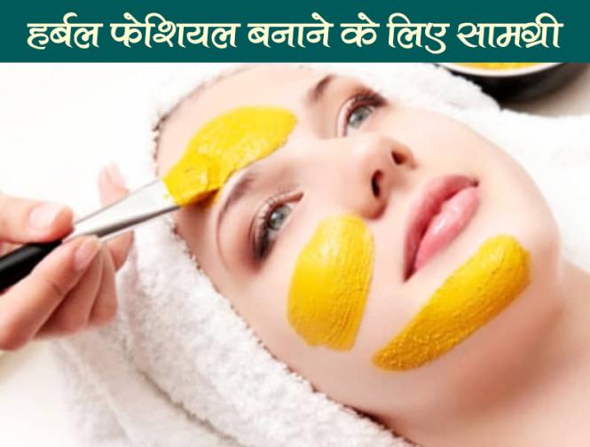 हर्बल फेशियल बनाने के लिए सामग्री: 2 से 3 चम्मच शहद, 2 से 3 चम्मच ओट्स या चावल, कद्दूकस किया हुआ आलू, कोकोनट मिल्क, ग्रीन टी के 3 बैग, पपीता, स्ट्रॉबेरी, 2 चम्मच जैतून का तेल, 2 चम्मच बादाम तेल, आइस क्यूब्स। इसके अलावा अपने पास फेशियल कुछ टिश्यू पेपर या फिर साफ तौलिया रखें।