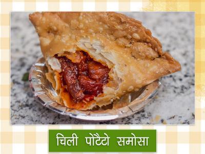 आलू समोसा - 10/- (समोसे को एक अलग और कई तरह से बनाने वाली दुकान ईस्ट दिल्ली के कृष्णा नगर में मौजूद है।)