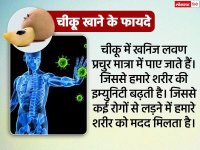 चीकू में खनिज लवण प्रचुर मात्रा में पाए जाते हैं। जिससे हमारे शरीर की इम्युनिटी बढ़ती है। जिससे कई रोगों से लड़ने में हमारे शरीर को मदद मिलता है।