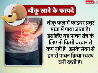 चीकू फल में फाइबर प्रचुर मात्रा में पाया जाता है। इसलिए यह पाचन तंत्र के लिए भी किसी वरदान से कम नहीं है। इसके सेवन से हमारी पाचन क्रिया स्वस्थ बनी रहती है।