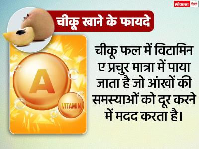 चीकू फल में विटामिन ए प्रचुर मात्रा में पाया जाता है जो आंखों की समस्याओं को दूर करने में मदद करता है।