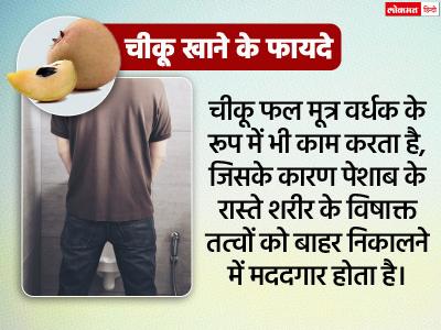 चीकू फल मूत्र वर्धक के रूप में भी काम करता है, जिसके कारण पेशाब के रास्ते शरीर के विषाक्त तत्वों को बाहर निकालने में मददगार होता है।