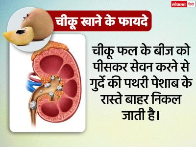 चीकू फल के बीज को पीसकर सेवन करने से गुर्दे की पथरी पेशाब के रास्ते बाहर निकल जाती है।