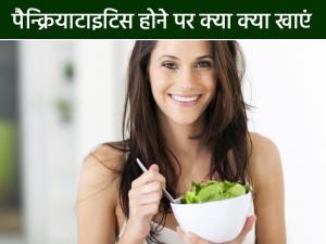 1 / 10पैन्क्रियाटाइटिस होने पर क्या क्या खाएं: अगर आप पैंक्रियाज को स्वस्थ रखना चाहते हैं तो आप प्रोटीन युक्त भोजन का सेवन ज्यादा और वसायुक्त भोजन का सेवन कम करें।2 / 101) एंटीऑक्सीडेंट की मात्रा अपने आहार में बढ़ा लें तथा फलियाँ जो कि प्रोटीन से भरपूर होता हैं उसका सेवन करे ओर डेरी उत्पाद जैसे बादाम का दूध और अलसी का दूध अपने आहार में शामिल करें। इन चीज़ों के सेवन से आपके पैंक्रियाज बेहतर ढंग से कार्य कर पाएगा।3 / 102) कई शोध में यह बात सामने आई है कि जो व्यक्ति पैन्क्रियाटाइटिस से पीड़ित हैं वह 30% से 40% तक वसे से मिलने वाली कैलोरी ग्रहण कर सकता है यदि उसका स्त्रोत पूर्णतः किसी पौधे या ट्राइग्लिसराइड से है। बाकी सभी लोग 50 ग्राम प्रतिदिन और उससे भी कम वसायुक्त भोजन में बेहतर तरीके से कार्य करते हैं।4 / 103) पालक, ब्लू बैरीज़, चेरी,होल ग्रेन आपके पाचन क्रिया में मदद करेंगे साथ में अंगों को होने वाले नुक़सान से बचाव में सहायता करेंगे।5 / 104)आपको मीठा खाने का मन हो तो शक्कर वाले आहार के बजाए फल का सेवन करे। अधिक मिठा खाने से डायबिटीज होने का खतरा बढ़ जाता है।6 / 105) चेरी टमाटर और खीरे का सेवन आपके लिए बहुत फायदेमंद होगा।7 / 10पैन्क्रियाटाइटिस होने पर किन चीजों से परहेज करें: पैन्क्रियाटाइटिस की देखभाल न करने पर अधिक दर्द और परेशानी हो सकती है इससे बचने के लिए खाने में परहेज करने की जरूरत होती है।8 / 101) रेड मीट, तला हुआ भोजन ना खाएं।9 / 102) डेरी उत्पाद, मक्खन, मिठाइयाँ शराब इन चीज़ों के सेवन से बचें।10 / 103) कमर्शियल फूड्स जैसे कुकीज़ डोनट्स, आदी से दूरी बनाकर रखें।