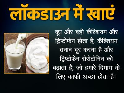 दूध और दही कैल्शियम और ट्रिप्टोफेन होता है, कैल्शियम तनाव दूर करना है और ट्रिप्टोफेन सेरोटोनिन को बढ़ाता है, जो हमारे दिमाग के लिए काफी अच्छा होता है।