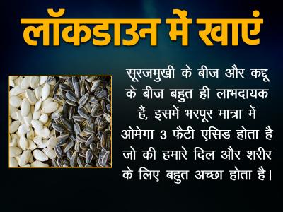 सूरजमुखी के बीज और कद्दू के बीज बहुत ही लाभदायक हैं, इसमें भरपूर मात्रा में ओमेगा 3 फैटी एसिड होता है जो की हमारे दिल और शरीर के लिए बहुत अच्छा होता है।