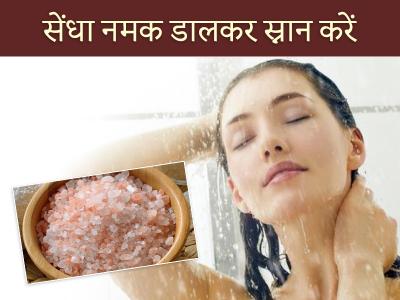 4) सेंधा नमक डालकर स्नान करें: अगर आप इस मौसम में बार बार नहाने का बहाना ढूंढते हैं तो यह एक फायदेमंद बहाना है। सैंधा नमक स्वस्थ ब्लड सर्कुलेशन को बढ़ावा देने के लिए जाना जाता है। अगली बार जब भी आप आरामदायक स्नान के बारे में सोचे तो बबल बाथ की जगह सेंधा नमक को पानी में डालकर नहाएं।