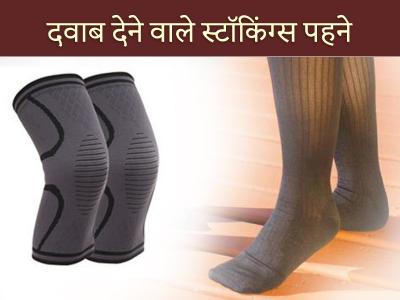 7) दवाब देने वाले स्टॉकिंग्स पहने: अगर आपको लगता है की आपके पैर में सूजन है या फिर ब्लड सर्कुलेशन कम हो रहा है तो दवाब देने वाले स्टॉकिंग्स पहने । दवाब वाले स्टॉकिंग्स ब्लड सर्कुलेशन बढ़ाने मे मदद करेंगें। स्टॉकिंग्स मार्केट में अलग अलग रंगों में भी मौजूद हैं।