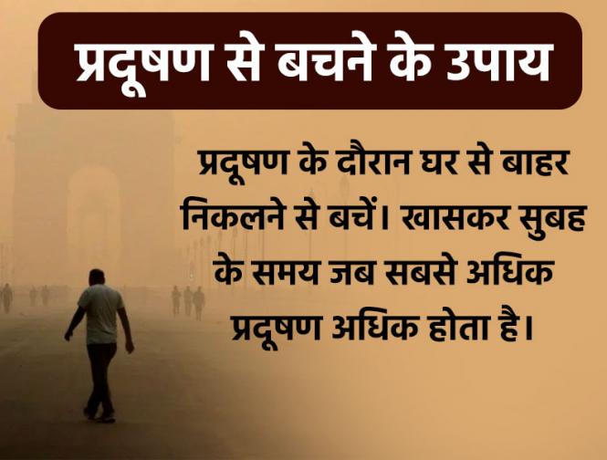 प्रदूषण के दौरान घर से बाहर निकलने से बचें। खासकर सुबह के समय जब सबसे अधिक प्रदूषण अधिक होता है।