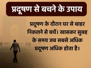 1 / 8 प्रदूषण के दौरान घर से बाहर निकलने से बचें। खासकर सुबह के समय जब सबसे अधिक प्रदूषण अधिक होता है।2 / 8आंखों का चश्मा जरूर पहनें, इससे आंखों का प्रदूषण से काफी हद तक बचाया जा सकता है। 3 / 8सफर के बाद और सोने से पहले साफ पानी से आंखों को धोयें। 4 / 8आंखों को हाथों से छूने से बचें और हाथ धोने के बाद ही आंखों को टच करें। आंखें रगड़ने से बचें।5 / 8आंखों में जलन होने पर सिर्फ डॉक्टर द्वारा निर्धारित आई ड्रॉप का ही इस्तेमाल करें। 6 / 8इस दौरान कांटेक्ट लेंस न पहनें और आई मेकअप से बचें। 7 / 8जलन कम करने के लिए कूल कॉम्प्रेसएहतर होगा का इस्तेमाल करना बेहतर होगा। 8 / 8लंबे समय तक स्क्रीन डिवाइस, जैसे मोबाइल फोन और लैपटॉप का उपयोग न करें।