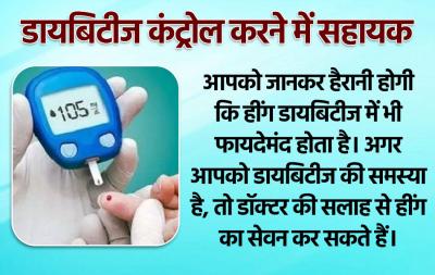 आपको जानकर हैरानी होगी कि हींग डायबिटीज में भी फायदेमंद होता है। अगर आपको डायबिटीज की समस्या है, तो डॉक्टर की सलाह से हींग का सेवन कर सकते हैं।