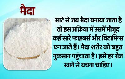 आटे से जब मैदा बनाया जाता है तो इस प्रक्रिया में उसमें मौजूद कई सारे फाइबर्स और विटामिन्स छन जाते हैं। मैदा शरीर को बहुत नुकसान पहुंचाता है। इसे हर रोज खाने से बचना चाहिए।