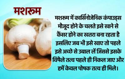 मशरूम में कार्सिनोजेनिक कंपाउड्स मौजूद होने के चलते इसे खाने से कैंसर होने का खतरा बना रहता है इसलिए जब भी इसे खाए तो पहले इसे अच्छे से उबाल लें जिससे इसके विषैले तत्व पहले ही निकल जाए और हमें केवल पोषक तत्व ही मिले।