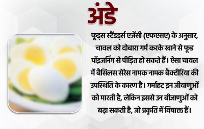 अंडे प्रोटीन का एक समृद्ध स्रोत हैं, हालांकि, बार-बार गर्मी के संपर्क में आने पर पका हुआ अंडा या उबला हुआ अंडा गंभीर नुकसान पहुंचा सकता है। एक बार जब आप अंडे पकाते हैं, तो उन्हें तुरंत खाएं, लेकिन अगर इसे लंबे समय तक रखा जाए, तो गर्म न करें, बल्कि सिर्फ ठंडा खाएं क्योंकि उच्च प्रोटीन वाले भोजन में नाइट्रोजन बहुत होती है। इस नाइट्रोजन के दोबारा गर्म होने के कारण ऑक्सीकरण हो सकता है, जिससे कैंसर हो सकता है।