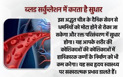 इस अद्भुत चीज के दैनिक सेवन से धमनियों को मोटा होने से रोका जा सकेगा और रक्त परिसंचरण में सुधार होगा। यह आपके शरीर की कोशिकाओं की कोशिकाओं में हानिकारक कणों के निर्माण को भी कम करेगा। यह सब हृदय स्वास्थ्य पर सकारात्मक प्रभाव डालते हैं।