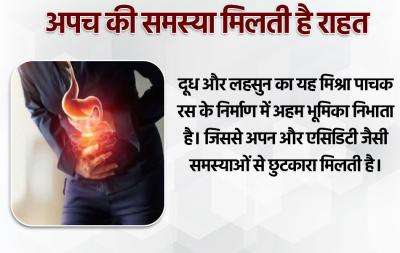 दूध और लहसुन का यह मिश्रा पाचक रस के निर्माण में अहम भूमिका निभाता है। जिससे अपन और एसिडिटी जैसी समस्याओं से छुटकारा मिलती है।