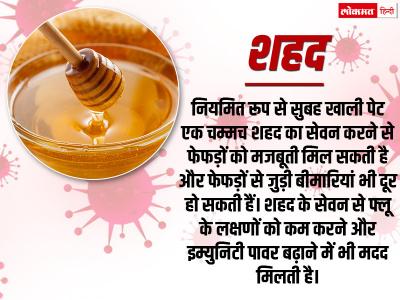 नियमित रूप से सुबह खाली पेट एक चम्मच शहद का सेवन करने से फेफड़ों को मजबूती मिल सकती है और फेफड़ों से जुड़ी बीमारियां भी दूर हो सकती हैं। शहद के सेवन से फ्लू के लक्षणों को कम करने और इम्युनिटी पावर बढ़ाने में भी मदद मिलती है।