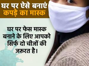1 / 7घर पर फेस मास्क बनाने के लिए आपको सिर्फ दो चीजों की जरूरत है। 2 / 7 पहला एक साफ रुमाल के जितना बड़ा कपड़ा और दो रबर बैंड। 3 / 7इसे बनाने के लिए सबसे पहले आप कपड़ा लें। 4 / 7इसके बाद उसे ऊपर से नीचे की तरह ऐसे फोल्ड करें जैसे आप बचपन में कागज का पंखा बनाने के लिए मोड़ते थे। 5 / 7इसके कपड़े के दोनों किनारों को थोड़ा-थोड़ा मोड़ लें और उसमें रबर बैंड लगा दें। 6 / 7इसके बाद किनारों पर स्टेपल पिन लगा दें। आपका मास्क तैयार है। 7 / 7इसे उतारने के बाद कहीं भी नहीं फेंकें बल्कि इसका सही से निपटान करें।