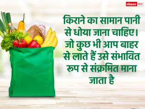 1 / 11किराने का सामान पानी से धोया जाना चाहिए। जो कुछ भी आप बाहर से लाते हैं उसे संभावित रूप से संक्रमित माना जाता है2 / 11किराने का सामान धोने से पहले, अपने हाथों को साबुन और पानी से 20 सेकंड तक धोएं3 / 11खाना पकाने के बाद या बर्तन धोने के बाद भी अपने हाथ धोएं4 / 11 निश्चित करें कि आप पैकेट, पन्नी या लिफाफे को बंद डस्टबिन में फेंके5 / 11घर का केवल एक सदस्य सुनिश्चित सामान खरीदने जाए6 / 11बाहर जाते समय अपने साथ एक सैनिटाइटर को रखें और सतहों को छूने से बचें7 / 11शॉपिंग कार्ट, हैंडल या भुगतान मशीनों को छूने के बाद हाथों को साफ करें या धोएं8 / 11कैशलेस भुगतान करने की कोशिश करें क्योंकि मुद्रा का आदान-प्रदान एक संभावित जोखिम पैदा कर सकता है9 / 11अगर संभव है, तो डिस्पोजेबल ग्लव्स का उपयोग करें10 / 11घर वापस आने के बाद, शॉपिंग कंटेनरों को बाहर छोड़ दें और इस बीच नहा लें 11 / 11वायरस 24 घंटे कार्डबोर्ड पर, 72 घंटे प्लास्टिक पर जीवित रह सकता है। इसलिए, इस अवधि के बाद वस्तुओं का उपयोग करना सबसे अच्छा है।