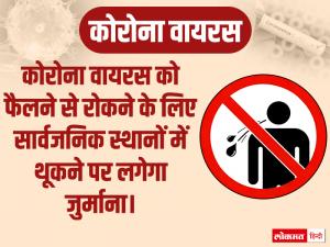 1 / 6चूंकि थूक और छींक या खांसी के ड्रॉप से यह वायरस जल्दी फैलता है इसलिए भारत में कई राज्यों में सार्वजनिक स्थानों पर थूकने पर रोक लगाई है। इतना ही नहीं ऐसा करने वालों पर भारी जुर्माना और जेल की सजा का भी ऐलान किया है। चलिए जानते हैं कि किन-किन राज्यों में यह फैसला लिया गया है। 2 / 6कोरोना वायरस को फैलने से रोकने के लिए केरल में सार्वजनिक स्थानों में थूकने पर 5 हजार रुपये का जुर्माना लगाने का फैसला किया गया है। पुलिस के अनुसार, यह नियम केरला पुलिस के एक्ट के सेक्शन 120(e) के तहत लिया गया है। जो व्यक्ति जुर्माना नहीं देगा, उसे एक साल की सजा हो सकती है।3 / 6इसी तरह गुजरात के अहमदाबाद में भी सार्वजनिक स्थानों पर थूकने पर 500 रुपये का जुर्माना लगाने का फैसला किया है। सूत्रों के अनुसार। अहमदाबाद में लोगों से एक दिन में करीब आठ लाख रुपये की वसूली की गई है।4 / 6मुंबई में सड़कों पर या किसी भी सार्वजनिक जगह पर थूकने पर 1000 रुपये का जुर्माना वसूला जाएगा। इसके लिए मार्शल सड़कों पर निगरानी रखेंगे। इससे पहले महाराष्ट्र में मंगलवार को कोरोना वायरस के संक्रमण के चलते 64 साल के एक व्यक्ति की मौत हो गई।5 / 6भारत में कोरोना वायरस का कहर तेजी से बढ़ता जा रहा है. देश में कोरोना से अब तक तीन लोगों की मौत हो चुकी है। इनमें एक मौत महाराष्ट्र में, एक कर्नाटक में और एक दिल्ली में हुई है।6 / 6अगर दुनियाभर की बात करें तो कोरोना की वजह से अब तक 7,994 लोगों की मौत हो गई है जिनमें सबसे ज्यादा चीन में 3,237 लोगों की जान गई है।