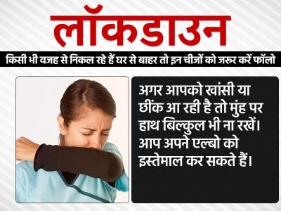 अगर आपको खांसी या छींक आ रही है तो मुंह पर हाथ बिल्कुल भी ना रखें। आप अपने एल्बो को इस्तेमाल कर सकते हैं।