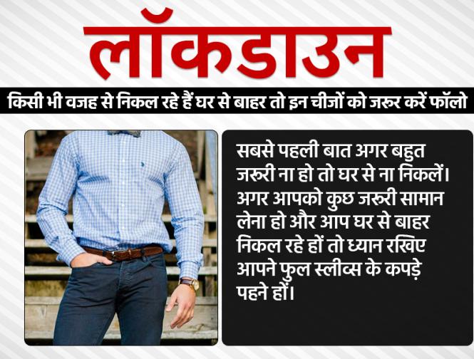 सबसे पहली बात अगर बहुत जरूरी ना हो तो घर से ना निकलें। अगर आपको कुछ जरूरी सामान लेना हो और आप घर से बाहर निकल रहे हों तो ध्यान रखिए आपने फुल स्लीव्स के कपड़े पहने हों।