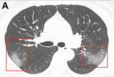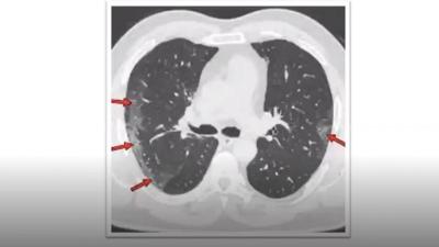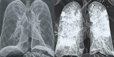 इस फोटो में एक्स-रे को अलग तरह से देखा जाता है। जिसमें कोरोना वायरस के घाव पूरी तरह से दिखाई दे रहे हैं। सीटी स्कैन रिपोर्ट दाएं और बाएं ओर के फेफड़े को अलग-अलग वर्गों में विभाजित करती है और कई अंक देती है।