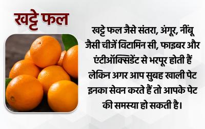 खट्टे फल जैसे संतरा, अंगूर, नींबू जैसी चीजें विटामिन सी, फाइबर और एंटीऑक्सिडेंट से भरपूर होती हैं लेकिन अगर आप सुबह खाली पेट इनका सेवन करते हैं तो आपके पेट की समस्या हो सकती है।