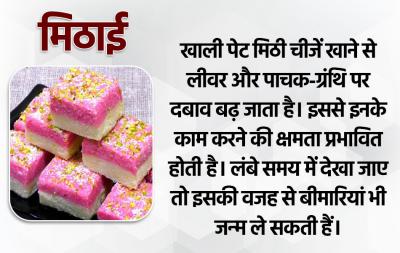 खाली पेट मिठी चीजें खाने से लीवर और पाचक-ग्रंथि पर दबाव बढ़ जाता है। इससे इनके काम करने की क्षमता प्रभावित होती है। लंबे समय में देखा जाए तो इसकी वजह से बीमारियां भी जन्म ले सकती हैं।