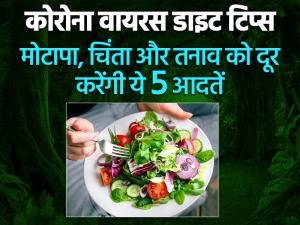 1 / 6लॉकडाउन लगे हुए एक महीना हो गया है और तभी से सभी लोग अपने घरों में बंद हैं, आज हम आपको खाने-पीने से जुड़े कुछ ऐसे उपाय बता रहे हैं जिन्हें अपनाकर आप इस गंभीर समय में भी अपने शरीर को हेल्दी और फिट रख सकते हैं और आपको चिंता, तनाव और उदासीनता से छुटकारा मिल सकता है। 2 / 6ऑफिस में पानी पीने की आदत को घर में भी बरकरार रखें। रोजाना आठ से 12 गिलास पानी पियें। पानी कम पीने से आपको डिहाइड्रेशन की समस्या हो सकती है जिससे थकान, सुस्ती और कमजोरी महसूस कर सकते हैं। घर में अपने लैपटॉप के पास ही एक पानी की बोटल रखें और दिन में बार-बार पानी पीते रहें। इसके लिए आप रिमाइंडर भी सेट कर सकते हैं। ध्यान रहे कि गर्मियों का मौसम है और शरीर में पानी की कमी से कई गंभीर सा,समस्याएं हो सकती हैं।3 / 6घर पर रहने का यह मतलब नहीं है कि आप दिनभर चाय या कॉफ़ी की डिमांड करते रहें। आपको कैफीन का की मात्रा का भी ध्यान रखना चाहिए, क्योंकि यह नींद के चक्र को प्रभावित कर सकता है। दिन में बहुत अधिक कैफीन लेने से रात में नींद आना मुश्किल हो सकता है। इसके अलावा, यह अम्लता और गैस, चिंता और सिरदर्द जैसे पाचन मुद्दों को जन्म दे सकता है। आपको दिन में सिर्फ दो कप कॉफी ही पीनी चाहिए।4 / 6ऐसा नहीं है कि घर में रहते हुए आप कभी भी और कुछ भी खाने लग जाएं। आप भोजन के समय की योजना बनाएं। यह महत्वपूर्ण है कि कोई भी भोजन छोड़ना नहीं चाहिए। नाश्ता दिन का सबसे महत्वपूर्ण भोजन है और आपको रोजाना हेल्दी नाश्ता करना चाहिए। इसमें ओट्स, फल, प्रोटीन और फाइबर युक्त खाद्य पदार्थ जैसे महत्वपूर्ण तत्व शामिल हैं। दोपहर के भोजन, शाम के नाश्ते और रात के खाने सहित अन्य सभी भोजन भी निर्धारित किए जाने चाहिए।5 / 6लॉकडाउन में लोग अपने घरों में तरह-तरह के जंक फ़ूड बना रहे हैं। जंक और चॉकलेट जैसे खाद्य पदार्थों से बचना चाहिए। इनके अधिक सेवन से आपको कई समस्याओं का सामना करना पड़ सकता है। इसके बजाय, फलों, सूखे मेवों, सब्जियों, स्वस्थ वसा और फाइबर से भरपूर खाद्य पदार्थों का सेवन करना चाहिए।6 / 6कई लोग नाश्ता, लंच आदि भी वर्क डेस्क पर ही करते हैं। आपको ऐसा करने से बचना चाहिए। इससे आपका पेट भी नहीं भरता और संतुष्टि भी नहीं मिलती है। दूसरा आपके पाचन भी असर पड़ता है। बेहतर है कि आप खाने के लिए अपने डाइनिंग रेबल पर जाएं और खाने के बाद थोडा टहल भी लें।