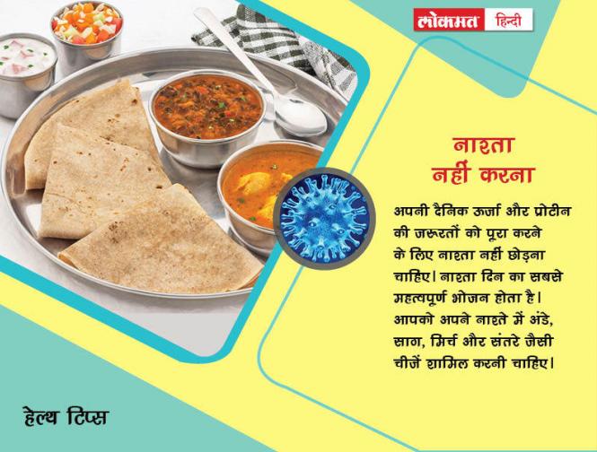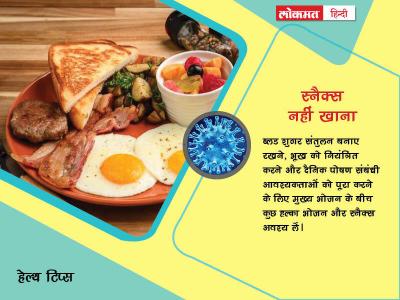 ब्लड शुगर संतुलन बनाए रखने, भूख को नियंत्रित करने और दैनिक पोषण संबंधी आवश्यकताओं को पूरा करने के लिए मुख्य भोजन के बीच कुछ हल्का भोजन और स्नैक्स अवश्य लें। फल और दही, दूध, नट्स जैसे बादाम, अखरोट या मल्टी-ग्रेन ब्रेड और पनीर जैसे स्नैक्स ले सकते हैं। इनसे प्रोटीन, विटामिन, खनिज और फाइबर की कमी पूरी होने के साथ प्रतिरोध को बढ़ाने में मदद मिलती है।