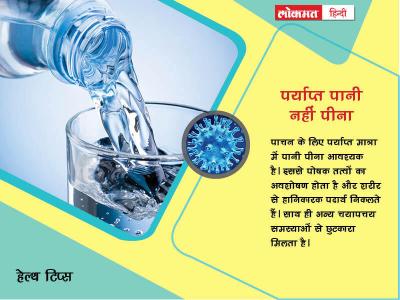 पाचन के लिए पर्याप्त मात्रा में पानी पीना आवश्यक है। इससे पोषक तत्वों का अवशोषण होता है और शरीर से हानिकारक पदार्थ निकलते हैं। साथ ही अन्य चयापचय समस्याओं से छुटकारा मिलता है। शरीर को वास्तव में वजन के प्रति किलोग्राम (या प्रति पाउंड लगभग आधा औंस) 30 मिलीलीटर पानी की आवश्यकता होती है। पानी नहीं पीने से कब्ज की समस्या हो सकती है जो सीधे प्रतिरक्षा प्रणाली को प्रभावित करता है।