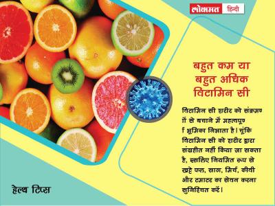 विटामिन सी शरीर को संक्रमणों से बचाने में महत्वपूर्ण भूमिका निभाता है। चूंकि विटामिन सी को शरीर द्वारा संग्रहीत नहीं किया जा सकता है, इसलिए नियमित रूप से खट्टे फल, साग, मिर्च, कीवी और टमाटर का सेवन करना सुनिश्चित करें। हालांकि अधिक मात्रा में विटामिन सी सप्लीमेंट का सेवन नुकसान भी कर सकता है, और गुर्दे की पथरी का कारण बन सकता है। इसलिए अपने विटामिन सी को खाद्य पदार्थों से प्राप्त करने का प्रयास करें।