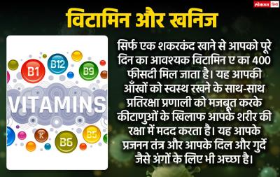 सिर्फ एक शकरकंद खाने से आपको पूरे दिन का आवश्यक विटामिन ए का 400 फीसदी मिल जाता है। यह आपकी आँखों को स्वस्थ रखने के साथ-साथ प्रतिरक्षा प्रणाली को मजबूत करके कीटाणुओं के खिलाफ आपके शरीर की रक्षा में मदद करता है। यह आपके प्रजनन तंत्र और आपके दिल और गुर्दे जैसे अंगों के लिए भी अच्छा है।