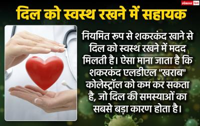 नियमित रूप से शकरकंद खाने से दिल को स्वस्थ रखने में मदद मिलती है। ऐसा माना जाता है कि शकरकंद एलडीएल "खराब" कोलेस्ट्रॉल को कम कर सकता है, जो दिल की समस्याओं का सबसे बड़ा कारण होता है।