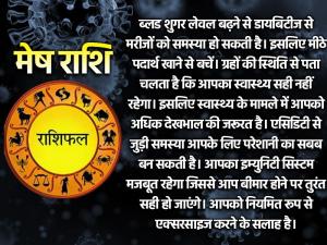 1 / 12ब्लड शुगर लेवल बढ़ने से डायबिटीज से मरीजों को समस्या हो सकती है। इसलिए मीठे पदार्थ खाने से बचें। ग्रहों की स्थिति से पता चलता है कि आपका स्वास्थ्य सही नहीं रहेगा। इसलिए स्वास्थ्य के मामले में आपको अधिक देखभाल की जरूरत है। एसिडिटी से जुड़ी समस्या आपके लिए परेशानी का सबब बन सकती है। आपका इम्युनिटी सिस्टम मजबूत रहेगा जिससे आप बीमार होने पर तुरंत सही हो जाएंगे। आपको नियमित रूप से एक्सरसाइज करने के सलाह है।2 / 12इस महीने आपके ग्रह पर कोई हानिकारक प्रभाव नहीं रहेगा। इसका मतलब यह हुआ कि आपका स्वास्थ्य सही रहेगा और आप ऊर्जा से भरपूर रहेंगे। प्रतिगामी बुध कुछ पुराने स्वास्थ्य मुद्दे आपके सामने ला सकता है। इसलिए शरीर में किसी भी तरह के असामान्य लक्षण महसूस होने पर तुरंत इलाज कराएं। एंटीबायोटिक दवा लेने की बजाय कुछ अल्टरनेटिव दवाएं लेना शुरू करें। सांस से जुड़ी समस्यायों का तुरंत इलाज कराएं।3 / 12ग्रहों की स्थिति से पता चलता है कि इस महीने आपका स्वास्थ्य सही रहेगा। हालांकि आपके साइन के ऊपर मंगल ग्रह के प्रभाव के कारण आपका ब्लड प्रेशर बढ़ सकता है। अगर आप किसी पुराने रोग जैसे- अस्थमा या सांस संबंधी संबंधी परेशानी से पीड़ित हैं, तो उसका सही तरह से इलाज कराएं। इससे राहत पाने के लिए आपको बाहरी उपायों पर निर्भर नहीं रहना चाहिए।4 / 12स्वास्थ्य के मामले में बुजुर्गों को मध्यम आयु वर्ग के लोगों को पुराने मामले परेशान कर सकते हैं। पाचन तंत्र में अम्लीय प्रवृत्ति बिगड़ने से आप परेशान रहेंगे। इससे राहत पाने के लिए आपको एंटीएसिड दवाएं लेनी चाहिए। कैल्शियम की कमी से संबंधित समस्या आपको परेशान कर सकती है। इसलिए आप खाने में कैल्शियम युक्त फल और सब्जियां शामिल करें। मध्यम आयु वर्ग के लोगों को कुछ पुराने रोग परेशान कर सकते हैं। आप इन रोगों का स्थायी रूप से इलाज कराने के लिए वैकल्पिक दवा की कोशिश करें।5 / 12फेफड़े की समस्या से पीड़ित लोगों को अपना अधिक ख्याल रखने की जरूरत है। वायु से प्रदूषित वाले स्थानों पर जाने से बचें। पाचन तंत्र में विकार से राहत पाने के लिए प्रभावी कदम उठाने की जरूरत है।अगर आपका ब्लड प्रेशर कंट्रोल नहीं है, तो आप समय-समय इसके उतार-चढ़ाव पर नजर रखें। इसके अलावा अपनी जीवनशैली को बेहतर रखने के लिए जंक फूड खाने से बचें। गणेशजी मध्यम आयु वर्ग के लोगों को मोर्निंग-इवनिंग वाक करने की सलाह दे रहे।6 / 12सूर्य पर शनि का प्रभाव है जिस वजह से आपको स्वास्थ्य से जुड़े कई गंभीर मुद्दे परेशान कर सकते हैं। इसलिए आप अधिक सतर्क रहें। अगर आप ब्लड प्रेशर की समस्या से पीड़ित हैं, तो आपको विशेष ध्यान रखने की जरूरत है। डायबिटीज के मरीजों को अपने खानपान का विशेष देखभाल की जरूरत है। डॉक्टर द्वारा बताई गई ड