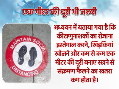अध्ययन में बताया गया है कि कीटाणुनाशकों का रोजाना इस्तेमाल करने, खिड़कियां खोलने और कम से कम एक मीटर की दूरी बनाए रखने से संक्रमण फैलने का खतरा कम होता है।