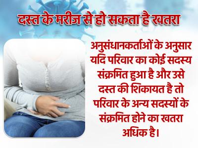 अनुसंधानकर्ताओं के अनुसार यदि परिवार का कोई सदस्य संक्रमित हुआ है और उसे दस्त की शिकायत है तो परिवार के अन्य सदस्यों के संक्रमित होने का खतरा अधिक है।